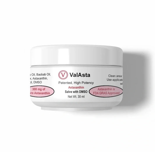 ValAsta is a mixture of Glucosidic Astaxanthin and Olive Oil using a proprietary method to create a Liposomal delivery. This Patented process of encapsulating the astaxanthin molecule inside a fat molecule took Valasta 8 years to develop. We use high frequency energy to do this, which makes the astaxanthin molecule far more absorbable inside the body.